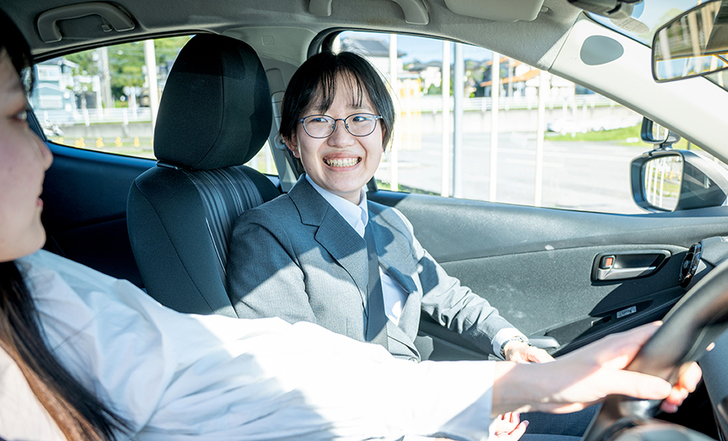 教習生と最初に顔を合わせる受付業務。安心して通ってもらえるよう、笑顔と声かけを大切にしています。